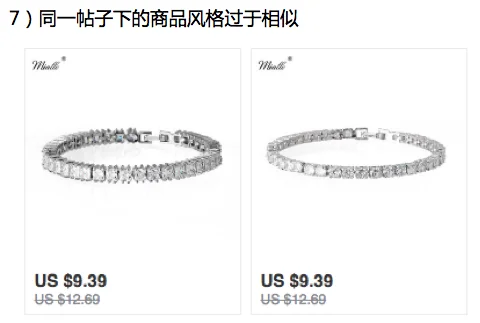 7、同一个帖子下的商品不能过于相似;