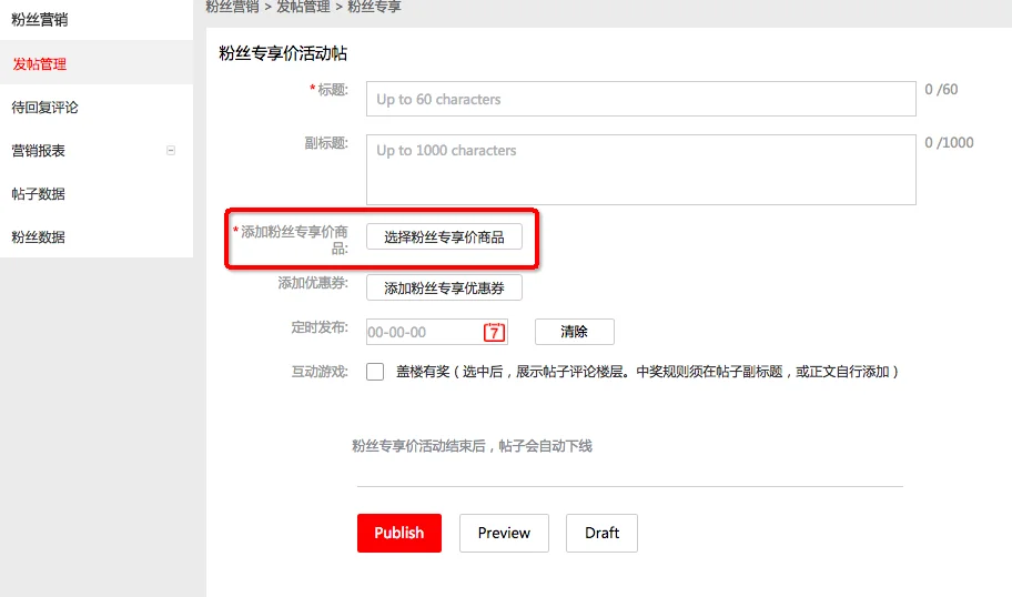 粉丝专享价活动帖创建流程