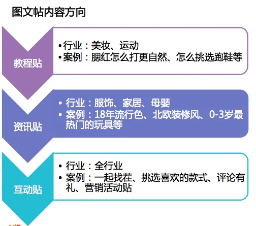 c.帖子内容丰富,质量好,能产生优质的教程贴、资讯贴、互动贴。如运动行业的pa跑鞋怎么挑选、服饰行业的2018年流行趋势、家居行业的北欧风怎么装修、互动贴如评论有礼、营销活动等。