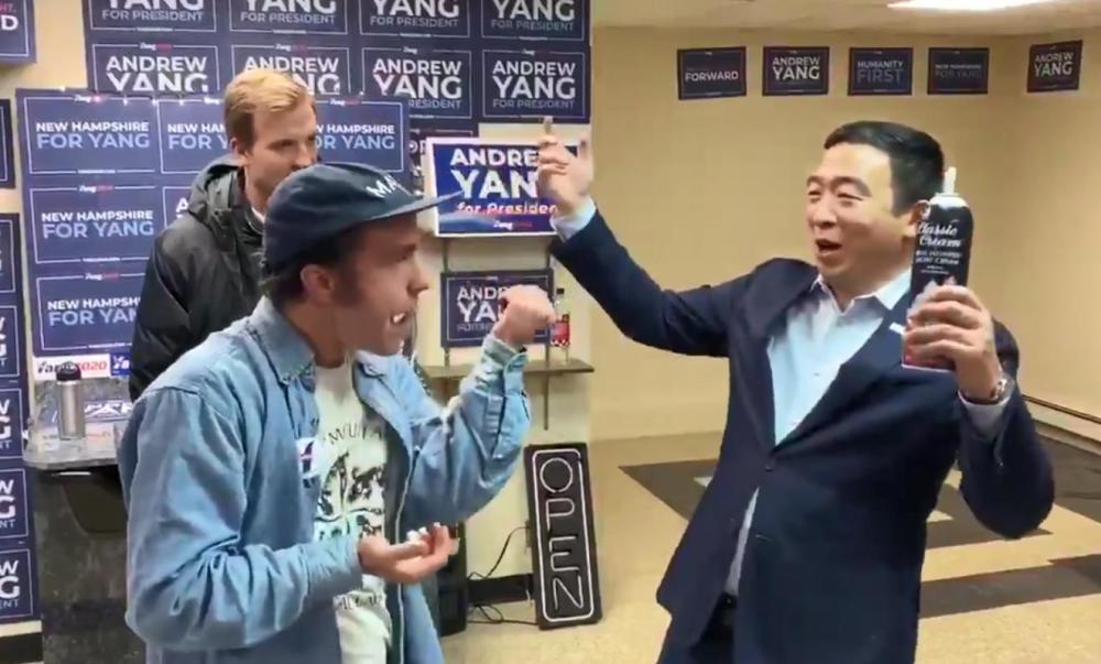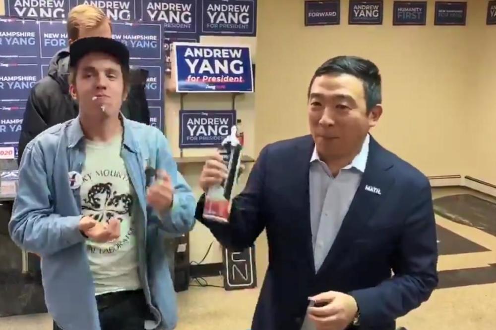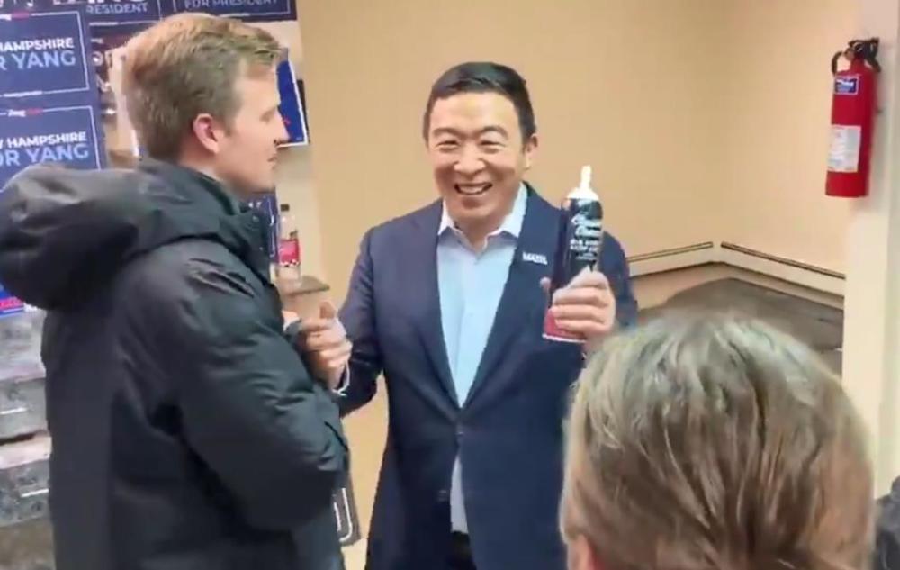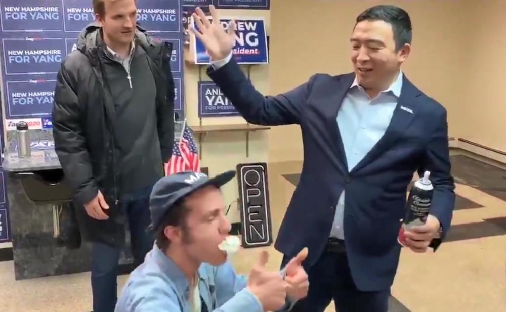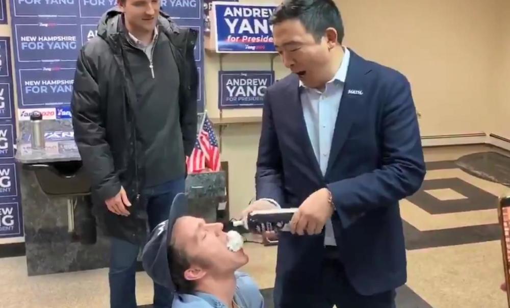 杨安泽还称往嘴里喷奶油是“新罕布什尔的传统”,并打趣道:“我们只是在为新年前夜热身。”