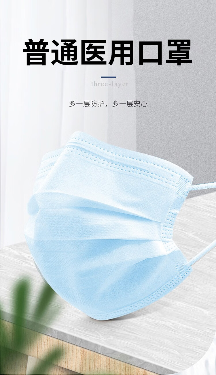 一次性使用医用口罩适用于覆盖使用者的口、鼻及下颌,用于普通医疗环境中佩戴、阻隔口腔和鼻腔呼出或喷出污染物的一次性使用口罩。口罩的细菌过滤效率应不小于95%。不适用于医用防护口罩,医用外科口罩。