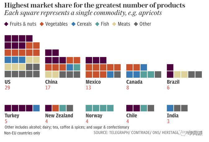 从博茨瓦纳牛肉到越南坚果,英国对进口食物的分类细到不可思议。《每日电讯报》对119种食物中进行了调查,却发现其中76种食物,非欧盟主要出口国供给英国的产品进口份额却不足5%。