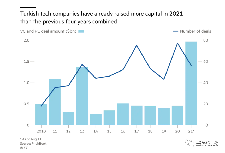 在游戏行业,土耳其也有像Dream Games、TaleWorlds Entertainment这样比较知名的开发商。而电商平台Hepsiburada今年7月在纳斯达克的上市也让土耳其吸引了更多投资者的目光。土耳其初创公司在2021年的融资额已超过去四年的总和。
