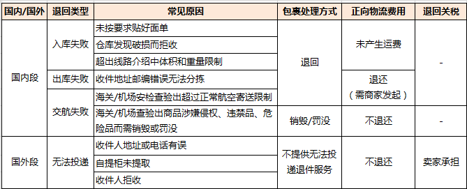 2) 交航失败退件:物流商会线下联系卖家,通过国内快递或其它物流方式退运给卖家,国内物流费用由平台承担。